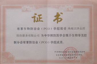 中國、珠海有害生物防治協(xié)會A級資質(zhì)認證